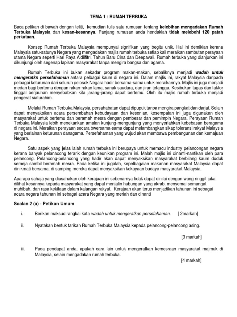 Laman Bahasa Melayu Spm Karangan Kepetingan Rumah Terbuka Di Malaysia